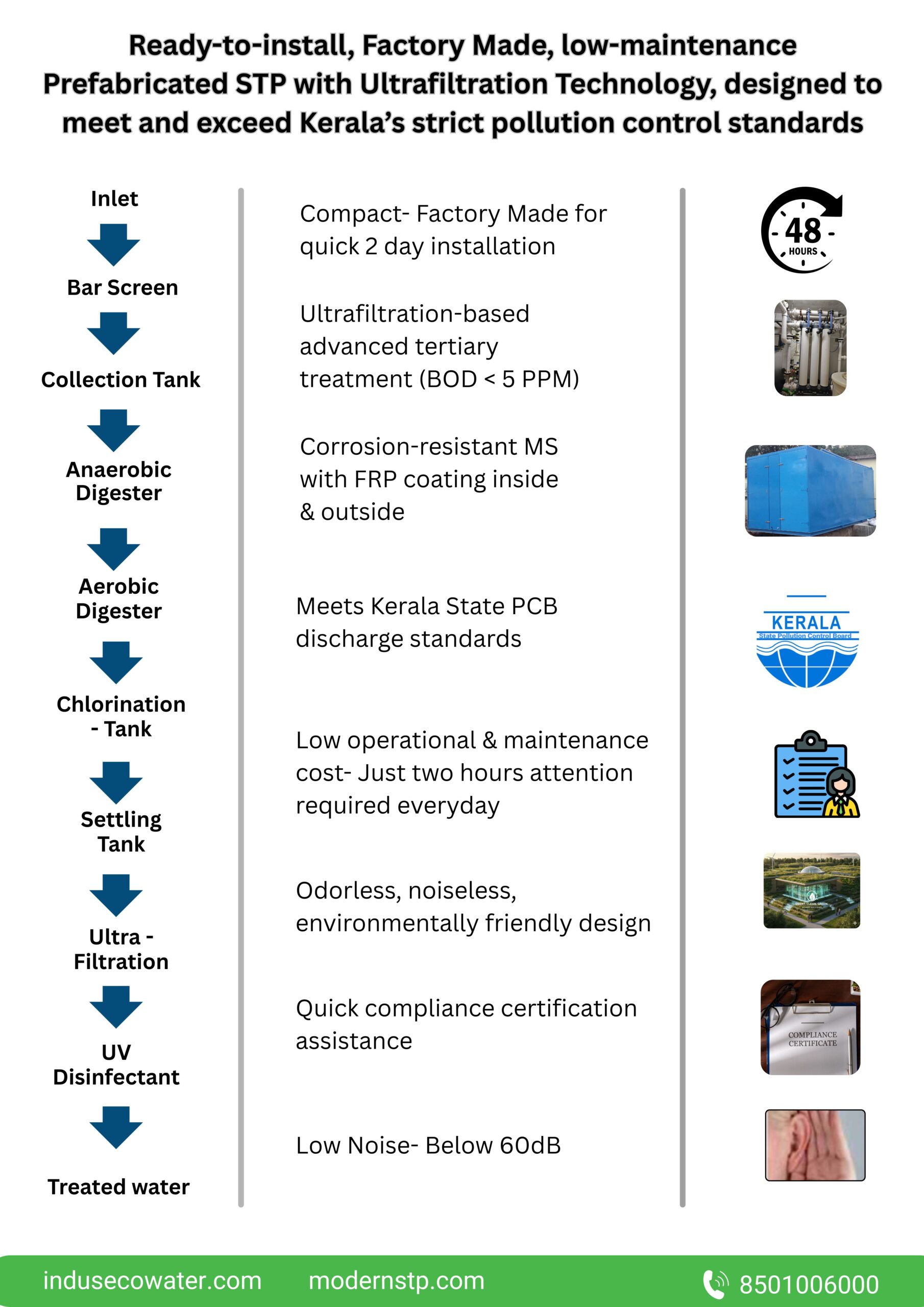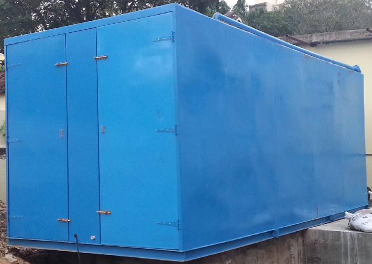 Indus Ecowater specialise in manufacture of Sewage Treatment tank with carbon steel. The wet areas are coated with 5 mm of Fiber Glass to prevent rusting and enhance tank life. Exterior is painted with Automotive paint ‘ASPA’ after two coats of metal primer. welded to this super structure.